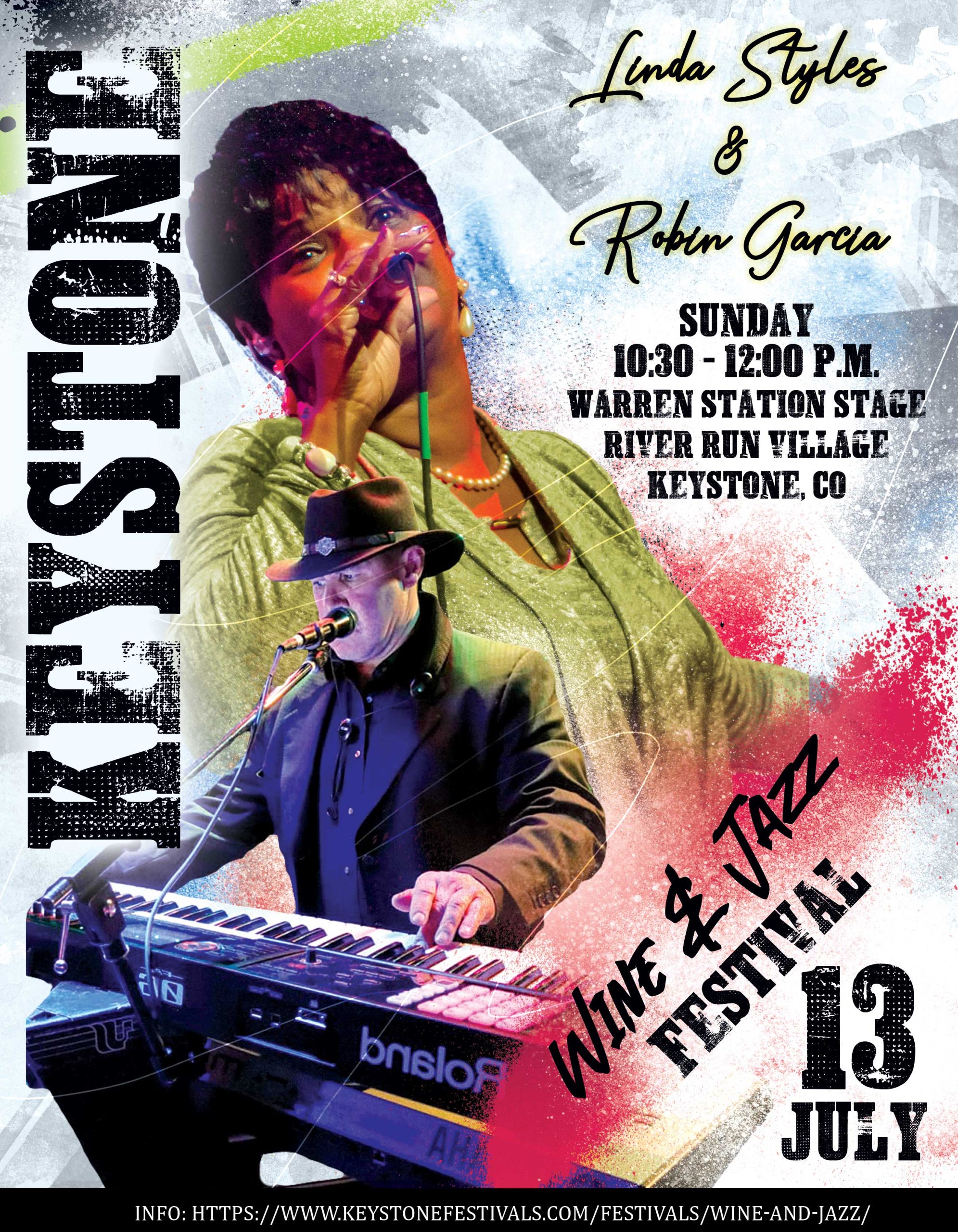 July 13, 2025 @ 10:30 am - 12:00 pm Keystone Wine & Jazz Festival – Linda Styles & Robin Garcia Warren Station River Run Village, Keystone